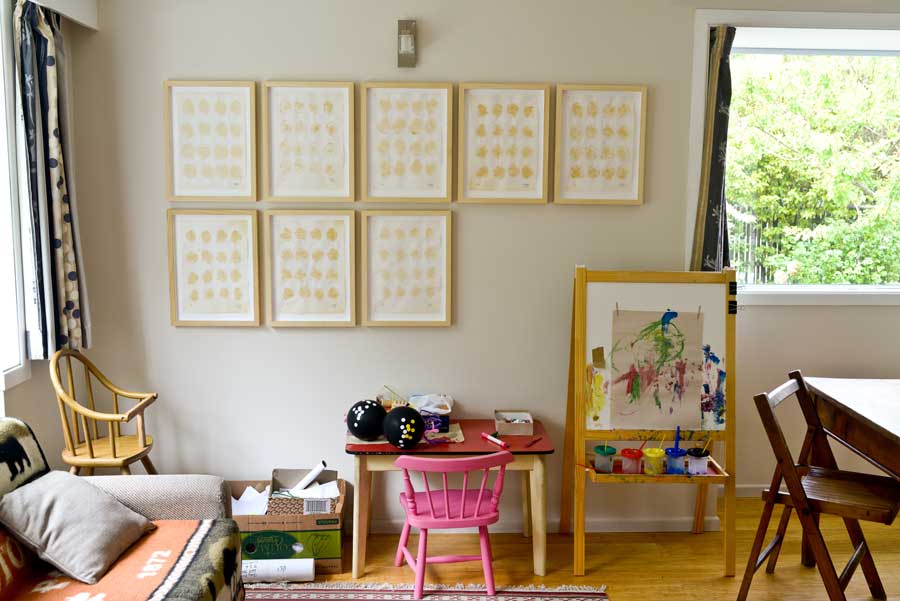 This work is part of the Home-Maker series, and was shown originally in the self titled exhibition within our own home amongst the chaos and debris of normal family life: Works which seek to situate the artist in relation to mother, wife and homemaker.