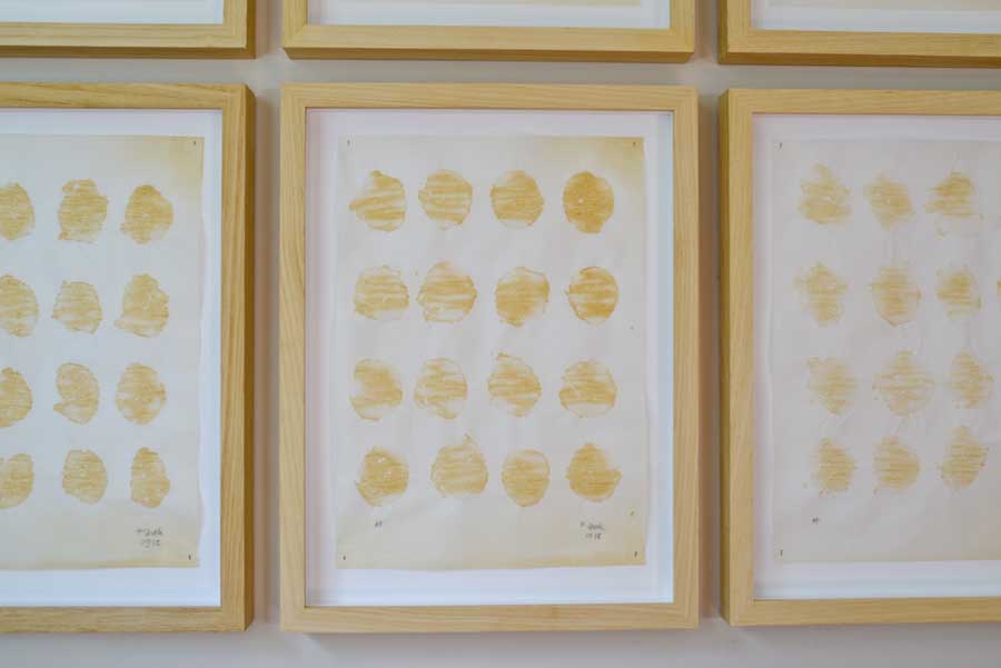‘Housewifery is continual, repetitious, ephemeral and the results are fleeting and usually uncelebrated’. Through the preservation and display of the incidental outcomes of housewifery, I look to make these past events tangible, asking the viewer to mentally reconstruct the actions which led to these traces: figuratively and physically framing the evidence of domestic labour.
